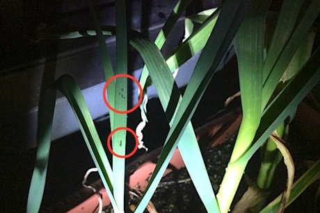 アブラムシがつきやすいと言われているカモミールの隣なのに、 なぜニンニクについているかと不思議に思っていましたが、この黒っぽいアブラムシは「ネギアブラムシ」と言って、ネギ類を好む種類のものでした。 ある程度手で取り除いてみましたが、葉っぱの内側にいるものを取るのは大変だったので、殺虫剤の力を借りました。(スミチオン乳剤)