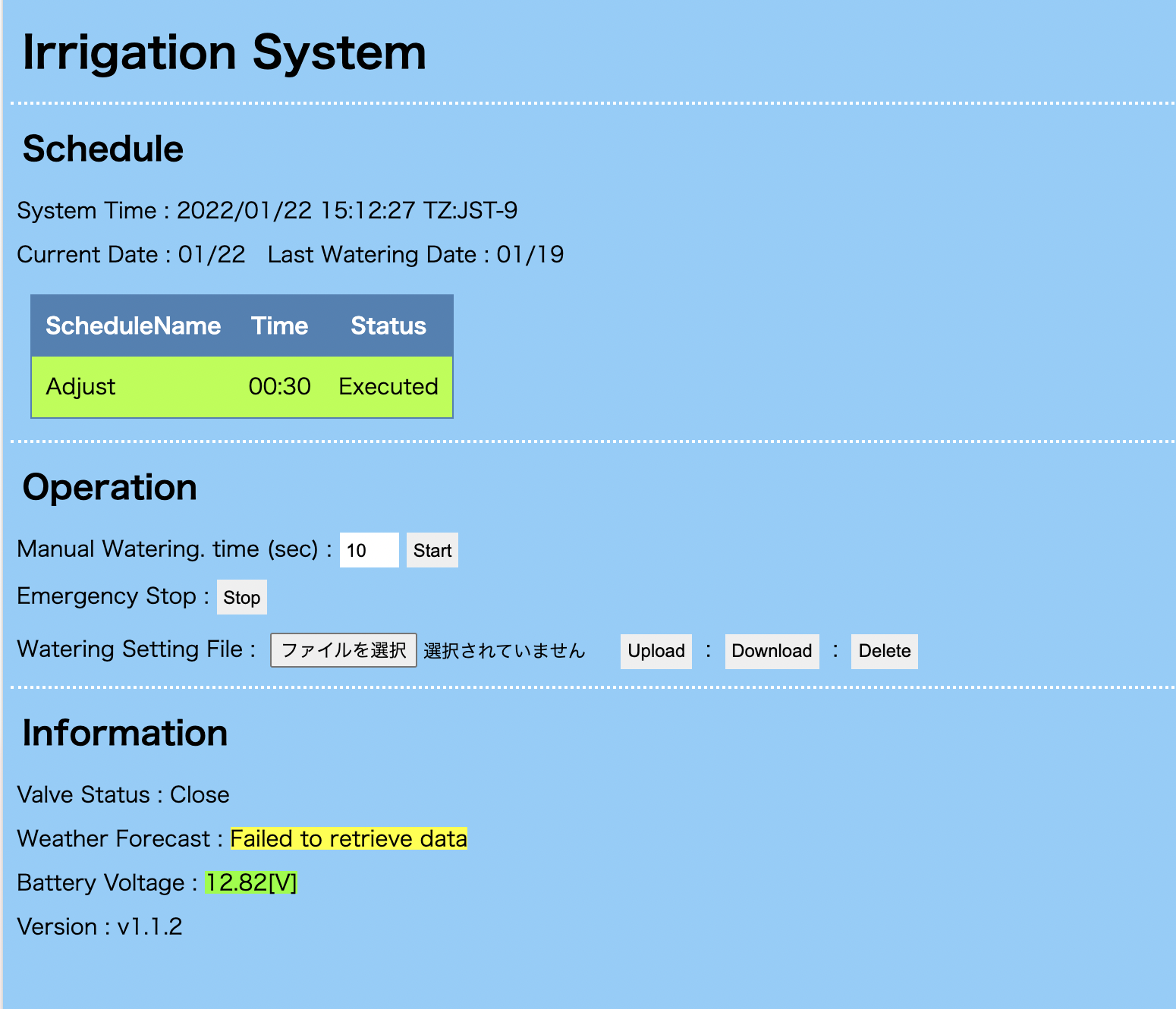 以前作成した自動潅水システムですが、運用を続ける中で細々とアップデートしてきました。 直近の更新は以下の2点。