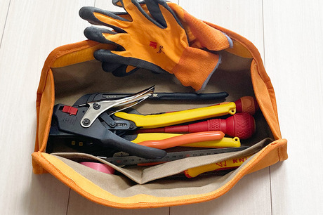 ツール入れは膝の上に置いて使えるよう自作しました。
