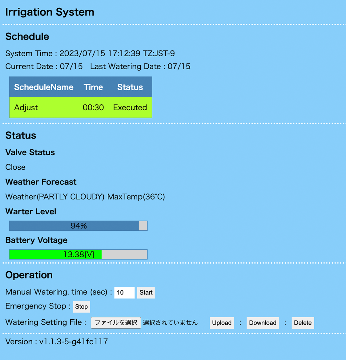 Webコンソールでは棒グラフで貯水量を表示するように対応してみました。