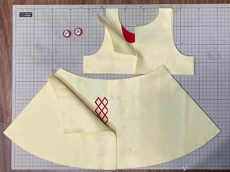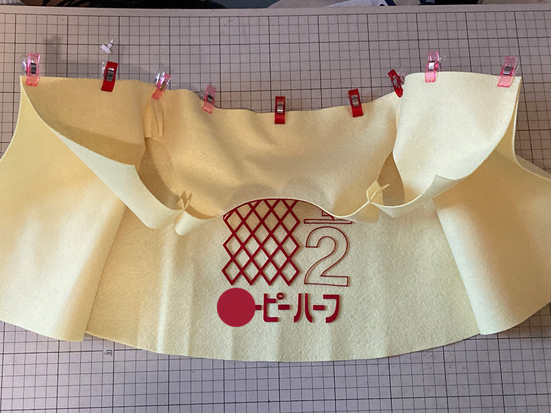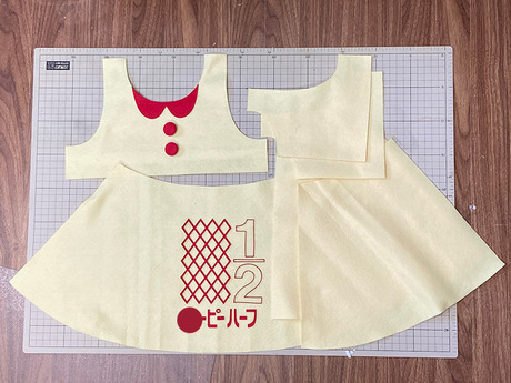 各パーツをミシンで縫い合わせ、コスチュームの形を整えます。