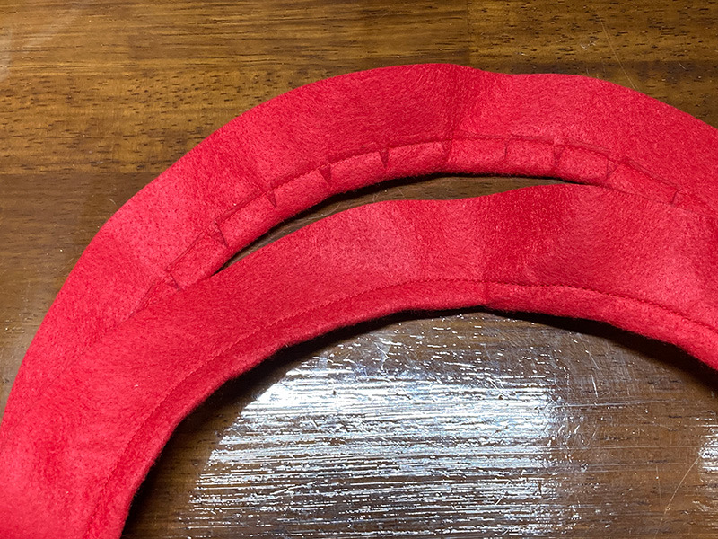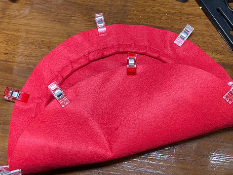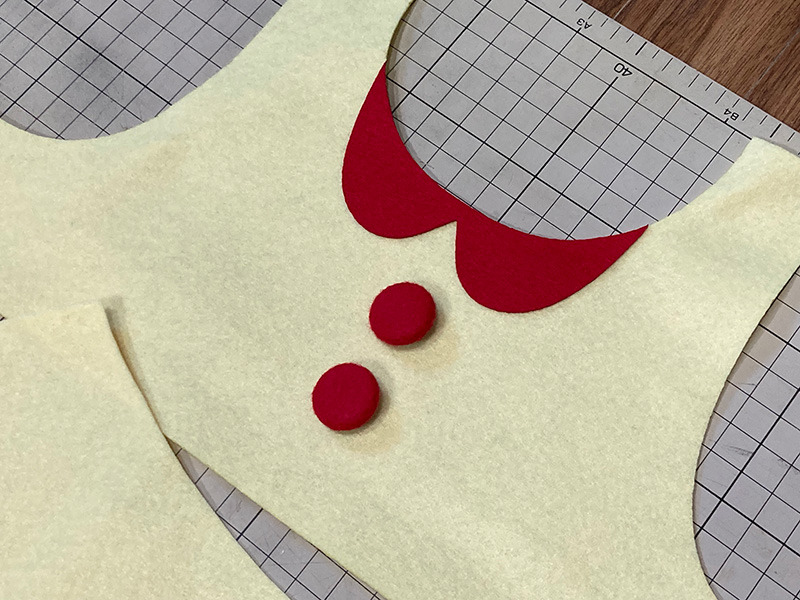 - 襟: 赤いフェルトで襟を作成し、胴体部分に接着します。