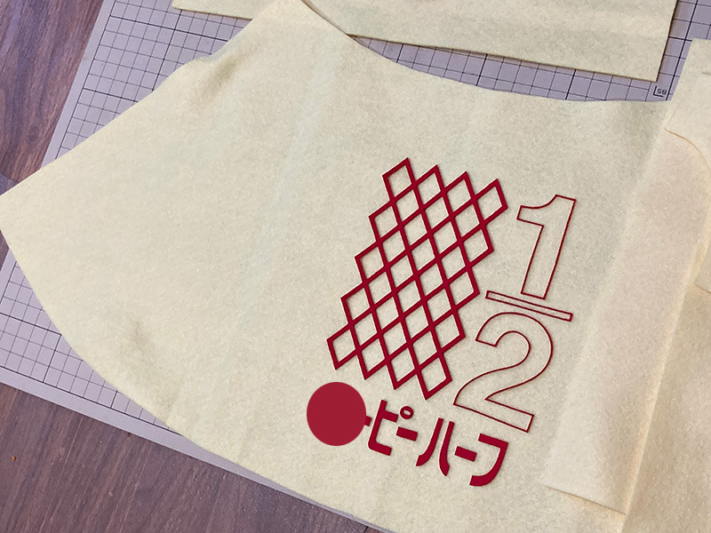 - ロゴ: 切り取ったロゴをベビーイエローのフェルトに接着します。