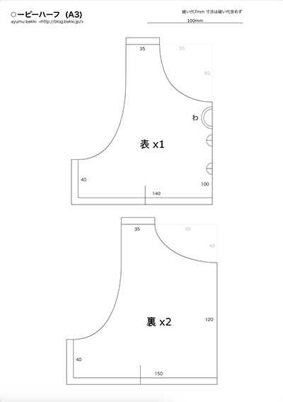 パターンにはあえて記載していませんが、必要に応じて背面にスナップボタンかメンファスナーをとりつけると写真撮影が安定するかもしれません。ぶっちゃけ撮影の時だけガムテープでとめる対応でも良いです。